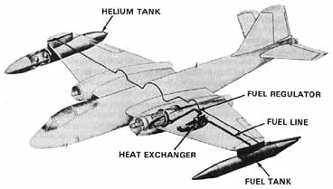 [105] Fig. 21. Liquid-hydrogen fuel system for one engine of a B-57 airplane installed by the NACA Lewis laboratory.