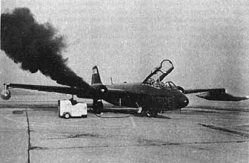 Fig. 22. B-57 airplane modified by the NACA Lewis laboratory to use liquid hydrogen in one engine. The wing-tip pod on the right (the airplane's left wing) is the hydrogen tank; the opposite pod contains helium for pressurization and purge. The dense smoke is normal in starting this engine on conventional fuel. [106] ... Simpkinson made the final check of instruments and the B-57 was fueled with JP-4. It was then towed to a remote site for loading liquid hydrogen. The vent of the tank was connected by pipe to a discharge area well away from the airplane and the system purged with helium. After countdown, 94 kilograms of liquid hydrogen were loaded into the wingtip tank. The ground crew left the vent-pipe system connected until Gough started the plane's engines on JP-4. At that time, Algranti closed the vent valve, the ground crew disconnected the vent line, and Gough began to taxi. He was accompanied by an Air Force chase plane equipped with a camera.26 As the B-57 taxied into position for take-off, Algranti was maintaining the pressure in the liquid hydrogen tank. With the vent valve closed, the vaporization of a small amount of hydrogen caused the pressure in the gas pocket above the liquid hydrogen to rise. The vaporization was caused by heat leakage through the insulation, which is unavoidable in a practical installation. From ground testing, Algranti knew that the pressure would rise from 1 to 3.5 atmospheres in about five minutes, and he had to manually vent the tank when the pressure began to rise above 3.5 atmospheres. While taxiing, he noticed that the rate of pressure rise was considerably slower than in ground tests; the instrument records indicated that sloshing and agitation of the hydrogen during taxiing slowed the pressure rise by a factor of two. During takeoff, the tank pressure dropped sharply from agitation. Once airborne, however, the agitation ceased and the pressure began to rise at about the same rate as in the stationary tests. This phenomenon was caused by thermal gradients and stratification of liquid hydrogen and its vapor and was the subject of detailed investigation later. The takeoff and climb to the cruising altitude of 15 200 meters took almost an hour, and during that time, Algranti vented the tank 8 times to keep the pressure within limits. This resulted in a loss of about 16 percent of the hydrogen. On signal, Algranti made the transition from JP-4 to hydrogen. The engine responded by overspeeding and vibrating hard. The startled pilots quickly shut it down, purged the lines, and jettisoned the liquid hydrogen in the wing tank. The B-57 was difficult to fly on one engine, but Gough's training included this contingency. The experiment had taken place over Lake Erie and the weather had deteriorated. Gough dismissed the chase plane, but the pilot elected to accompany him back to the Cleveland airport. The two landed side by side on dual runways in a light rain. Although the first flight was unsuccessful in operating the engine with hydrogen for an extended period, it was successful in showing that hydrogen could be handled and jettisoned safely. In addition, data were obtained on the phenomenon of hydrogen thermal stratification in the tanks. The second flight was also only partially successful. The transition from JP-4 to hydrogen was made successfully, but insufficient hydrogen flow prevented satisfactory high-speed engine operation. Again, the bulk of the hydrogen was jettisoned without incident. The jettisoning took less than 3 minutes, with the hydrogen forming a dense plume which vanished about 6 meters aft of the tank. On 13 February 1957, the first of three successful flights was made and the fuel system worked well.27 The transition to hydrogen was made in two steps. The hydrogen lines were first purged, then the engine was operated on JP-4 and gaseous hydrogen simultaneously. After two minutes of operations on the mixture, Algranti switched to hydrogen alone. The transition was relatively smooth and there was no appreciable [107] change in engine speed or tailpipe temperature. The engine ran for about 20 minutes on hydrogen. The pilots found that the engine responded well to throttle changes when using hydrogen. When the supply was almost exhausted, the speed began to drop. As this became apparent, Algranti switched back to JP-4 and the engine accelerated smoothly to its operating speed. The engine burning hydrogen had produced a dense and persistent condensation trail, while the other engine operating on JP-4 left no trail. On 26 April, Silverstein held a special conference to report what had been learned by the Bee project using hydrogen in flight. The 175 attendees heard 7 papers by 19 members of the project team. They covered hydrogen consumption, fueling problems, airplane tankage, airplane fuel system, and the flight experiments. The results were also given in a series of research reports published later.28 The first series of flights of the hydrogen-fueled B-57 was made with a helium pressurization system to force the liquid hydrogen from the wing-tip tank to the engines. This required a fairly heavy tank to withstand the pressure. Later, a liquid-hydrogen pump was developed which permitted a reduction in tank weight that more than offset the weight of the pump. Arnold Bierman and Robert Kohl developed the five-cylinder piston pump, driven by a hydraulic motor, for installation in the wing-tip liquid-hydrogen tank.29 Flight experiments with the pump extended into 1959. Three successful flights were made. Although the pump speed and discharge pressure varied, the hydrogen regulator maintained a constant engine speed during operation with hydrogen. All the transitions from JP-4 to hydrogen, burning hydrogen, and transition back to JP-4 were made without incident. The feasibility of using liquid hydrogen in flight had been thoroughly demonstrated.30 |